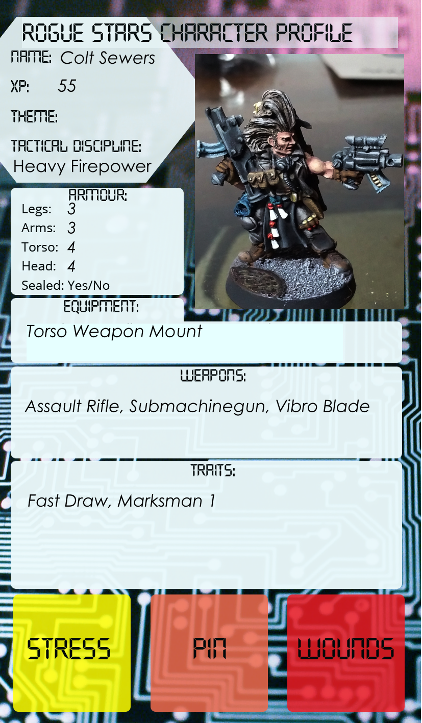 Das Spiel stammt vom Autor der sehr schönen Fantasyregeln, nach denen auf den Einkehrtagen mit Vompis Nachwuchs gespielt habe. Rogue Stars ist aber deutlich komplexer und geht in Richtung Rollenspiel, wobei eine Gang/Truppe/Team 4-6 Mitglieder hat. Der Einfachheit halber haben wir mit 3 pro Seite angefangen.