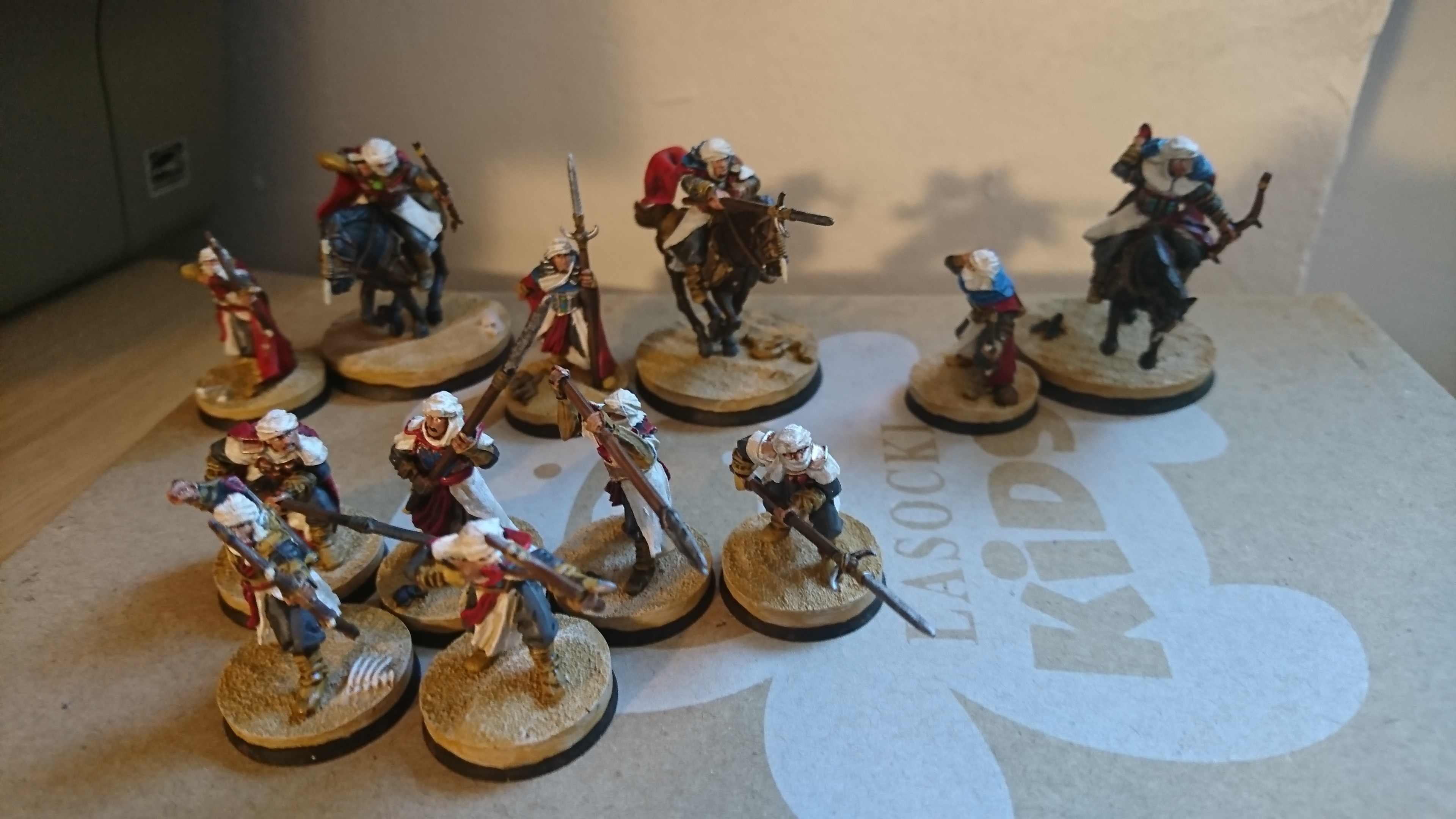 Bei den Haradrim habe ich das Gefühl, dass du mit dem Weiß entweder lange nicht zufrieden warst und da immer und immer wieder dran was verbessern wolltest, oder aber umgekehrt, nur sehr dick Farbe aufgetragen hast.