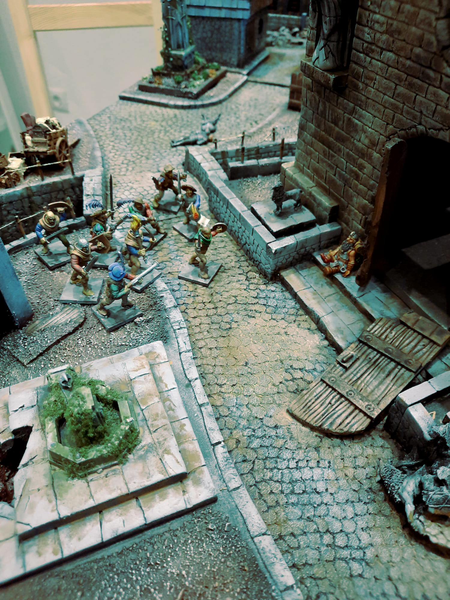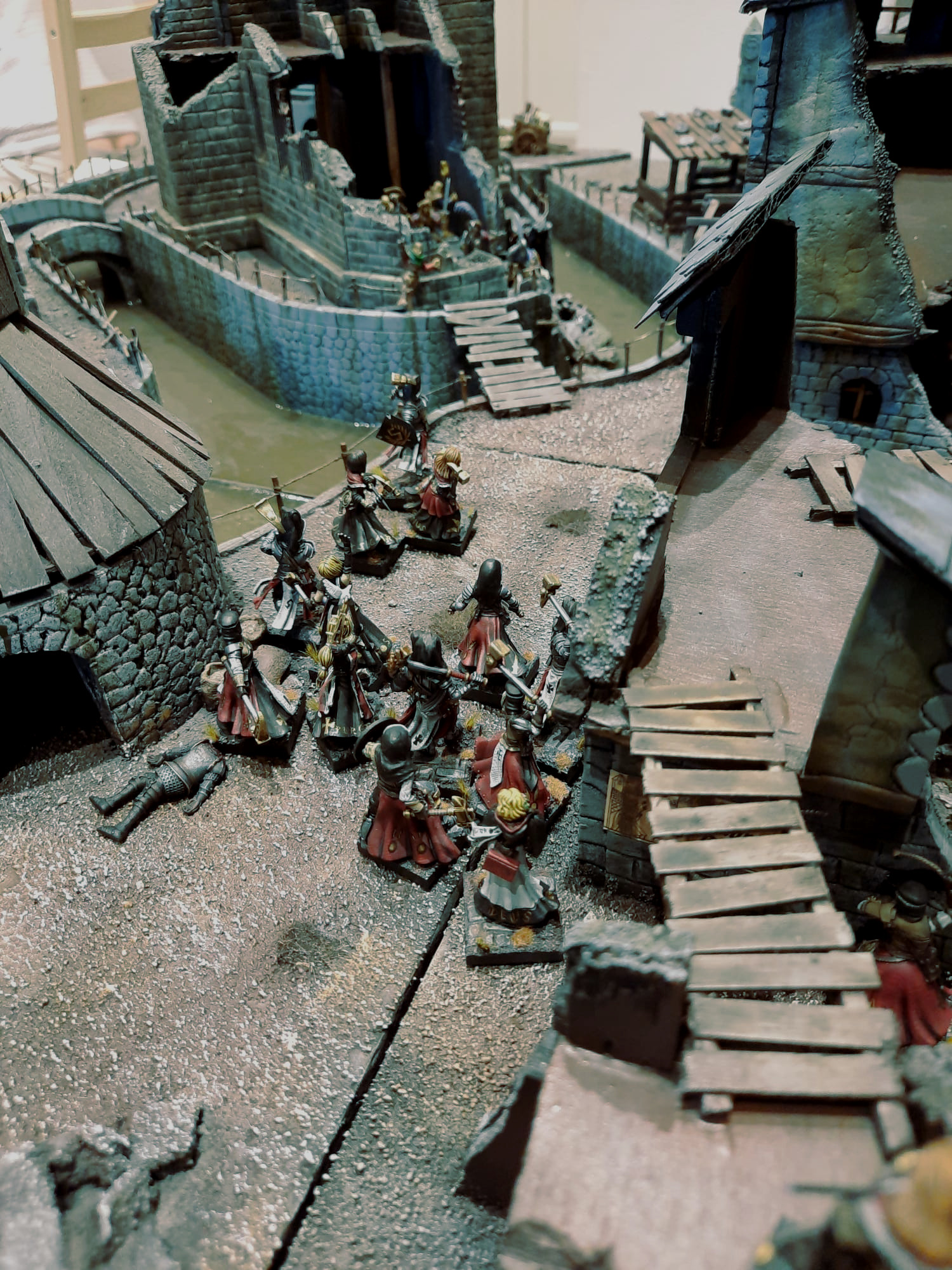 Aus dem Nebel kam eine Horde wildgewordener Nonen, sie schwangen Kriegshämmer und brüllten Gebete zu Sigmar. Hätte ich es nicht mit eigenen Augen gesehen, würde ich es auch nicht glauben. Steiner, Heinrich und Alfred hielten sie vorne an der zerstörten Tempelmauer auf, wo sie auf einer brücke aus Holzbrettern über den Kanal kamen. Alfred wurde überweltigt, doch Heinrich streckte vier dieser Weibsbilder eigenhändig nieder. Bei Sigmar ich habe noch nie einen Mann so kämpfen sehen, vielleicht ist er doch nocht so ein Milchbubi wie ich dachte.