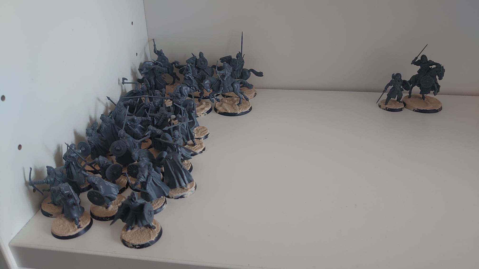 14 Reiter von Rohan, zwei Königliche Ritter beritten, Theoden zu Fuß und beritten, Gandalf zu Fuß und beritten (falls ich mal mit Zauberer spielen will^^)