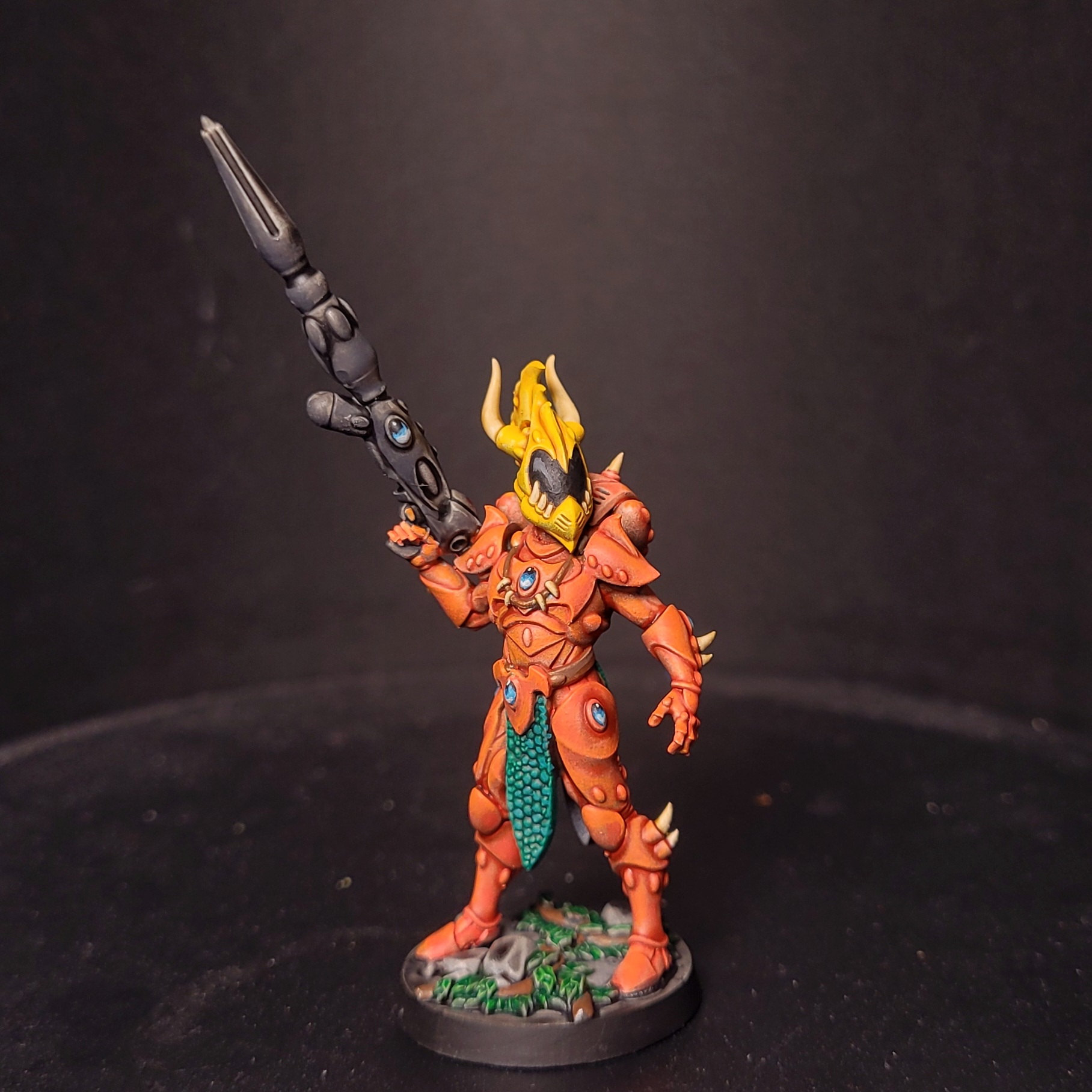 Ich überlege, die Aspektkrieger in ihren klassischen Farben zu bemalen – also Orange für die Fire Dragons und Rot/Schwarz für die Warpspiders, usw.