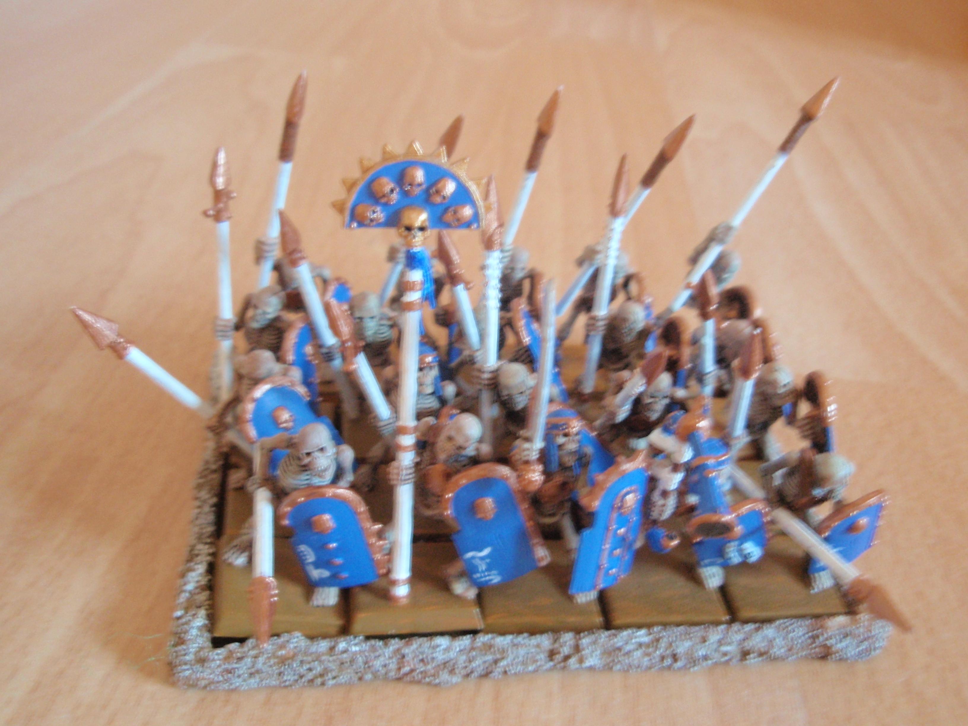 Da wären zum einen 20 Skelette mit CMS, Speeren und Schilden, bemalt.