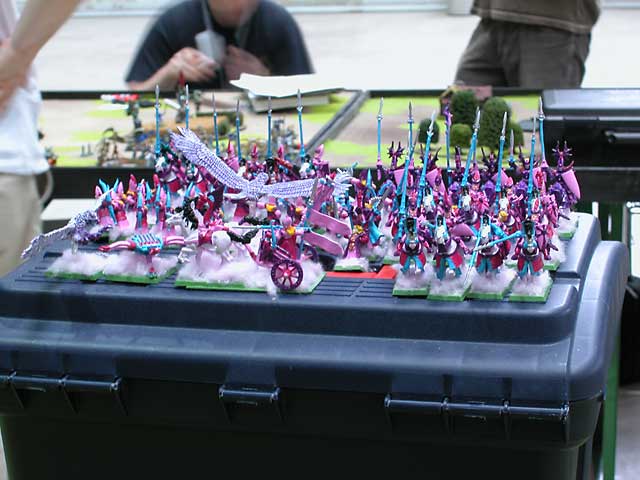 Abgesehen davon dass die Armeeaufstellung möglicherweise gar nicht so schlecht ist: Ich hab mal mit dem Harry aus der Melange über diese Armee gequatscht - er hat gesagt, er hat sie einmal live gesehen und ihm hat jeder GEGNER dieser Elfen leid getan. Da bekommst ja Kopfweh, wenn du gegen diese Spitzohren spielen musst *gg*. In der Bemalwertung hat der Typ übrigens auch nur einen Punkt für "vollständig bemalt" bekommen - er hat sich angeblich nicht wirklich viel Mühe beim Zusammenbau der Armee gegeben...