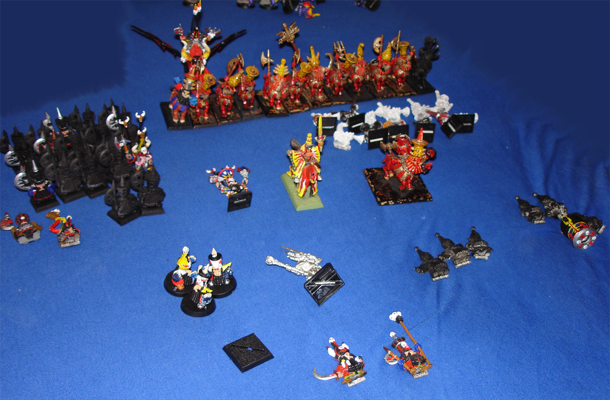 Zum Thema Chaoszwerge spielbar: Wer nach Tamukhan spielt hat die Möglichkeit, alle Chaosarmeen (im engen Sinn, also ohne Ratten), zu vereinen, das heisst, eine Chaos-Armee mit Tremorkanone oder Rocketlauncher ist denkbar. Aber wer will das schon, wenn er ohnehin schon eine Hellcannon haben kann? Vielleicht zusätzlich?