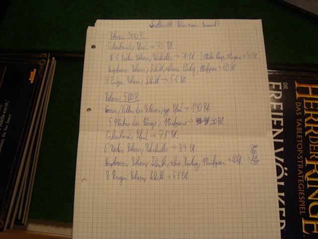 So, und nun zum Spielbericht. Es ging Rohan gegen Isengart, der Klassiker, das was jeder sehen will! Es traten folgende Listen an, gespielt mit 500 Punkten.