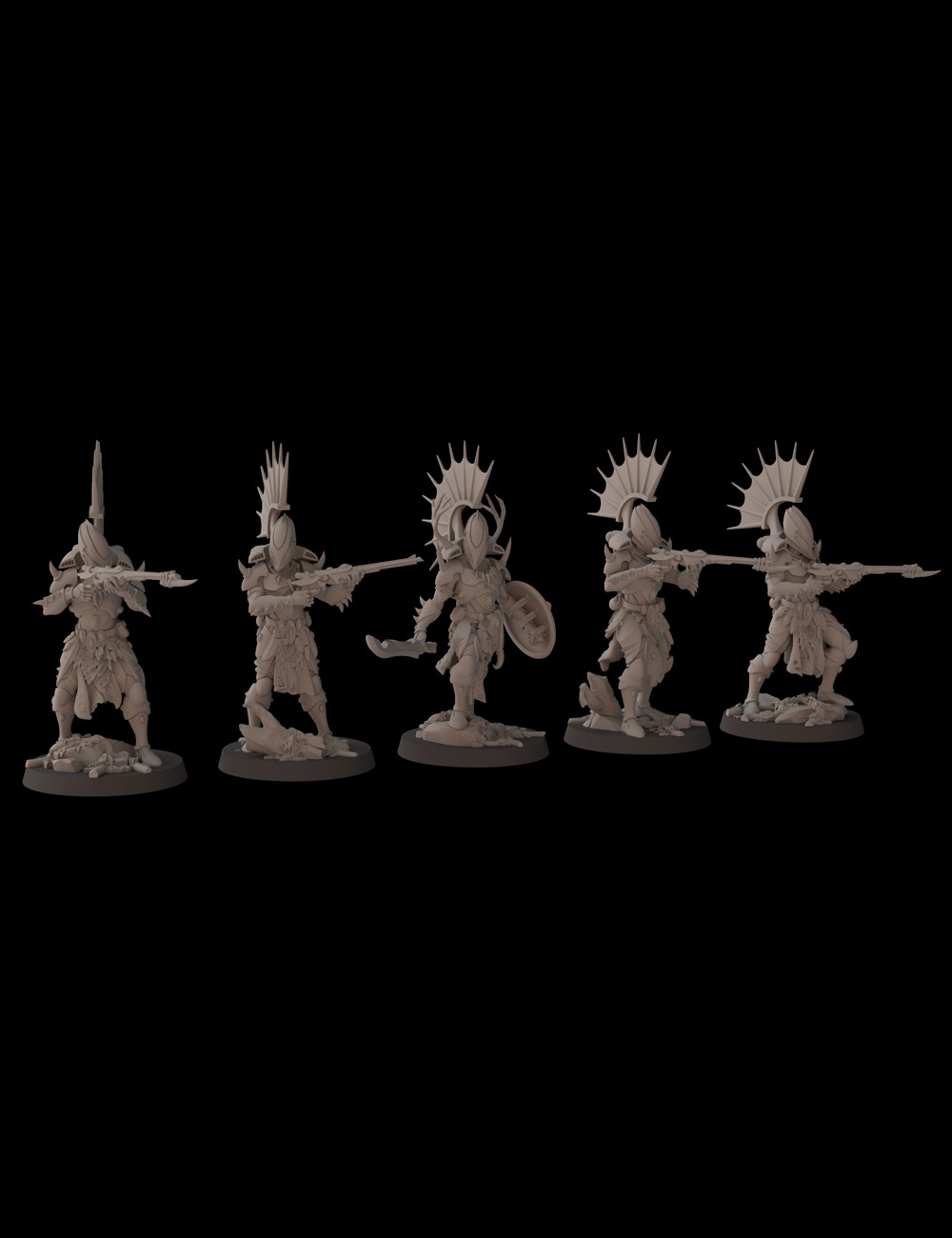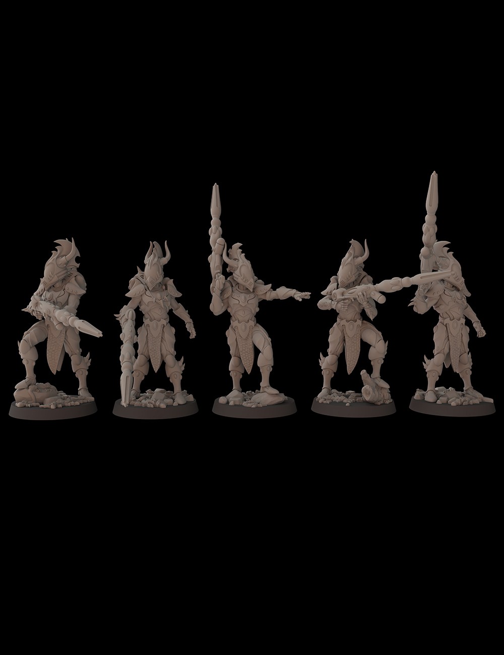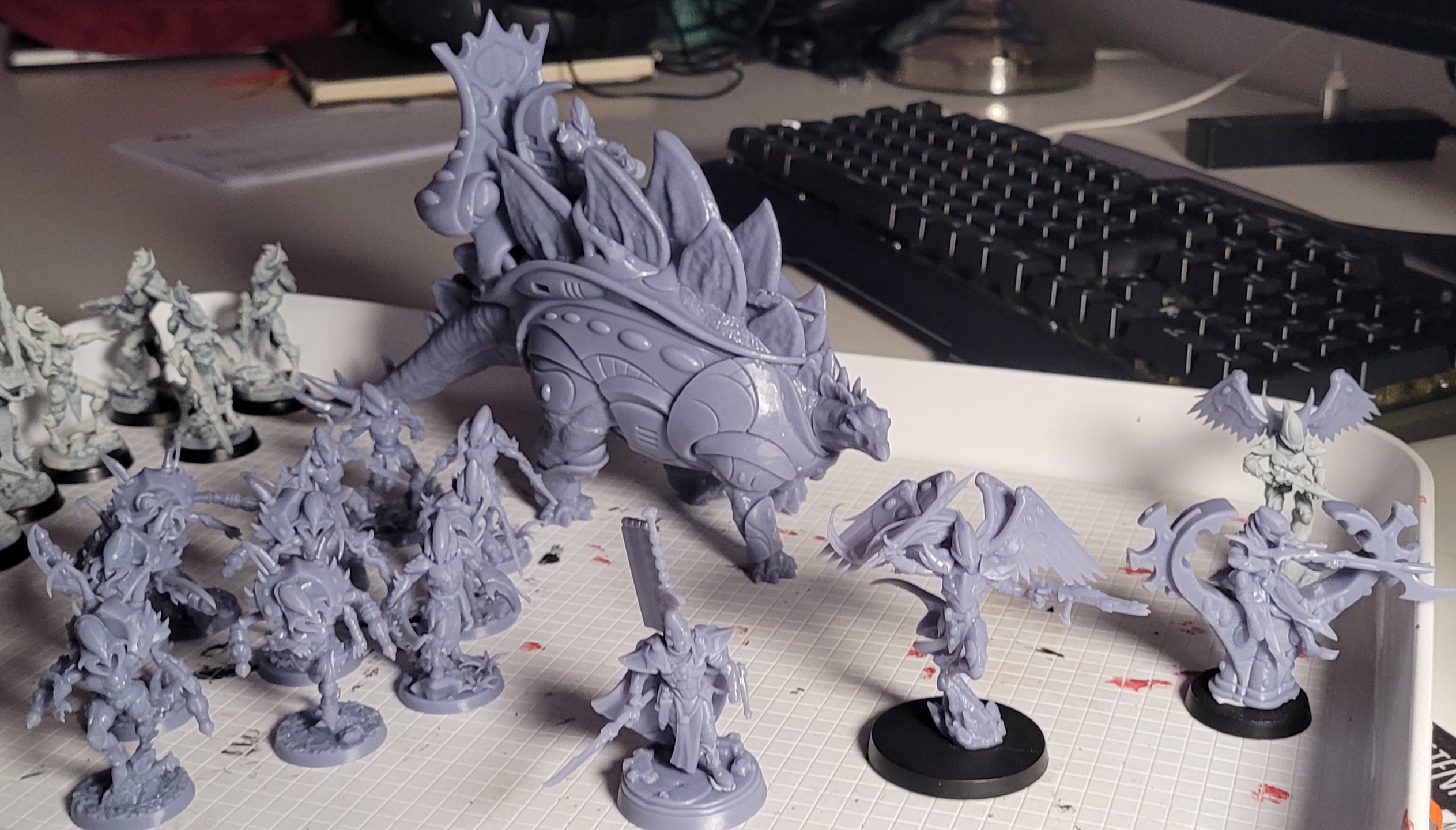 Der Clou: Ich habe zusätzlich eine Menge 3D-Druck-Files gefunden, die mir der gute Vompi vorgedruckt zur Verfügung stellen wird – eine kostengünstige Möglichkeit, noch mehr Variation in die Armee zu bringen. Die Dateien stammen vom Hersteller Fantasy Cult Miniatures aus der Aeterni-Serie. Es gibt sie in zwei Varianten: als "normale" Version oder als "Exodite-Eldar". Ich tendiere zur Exodite-Variante, da sie einen besonderen Look bietet, der sich von den herkömmlichen Aeldari-Armeen abhebt.