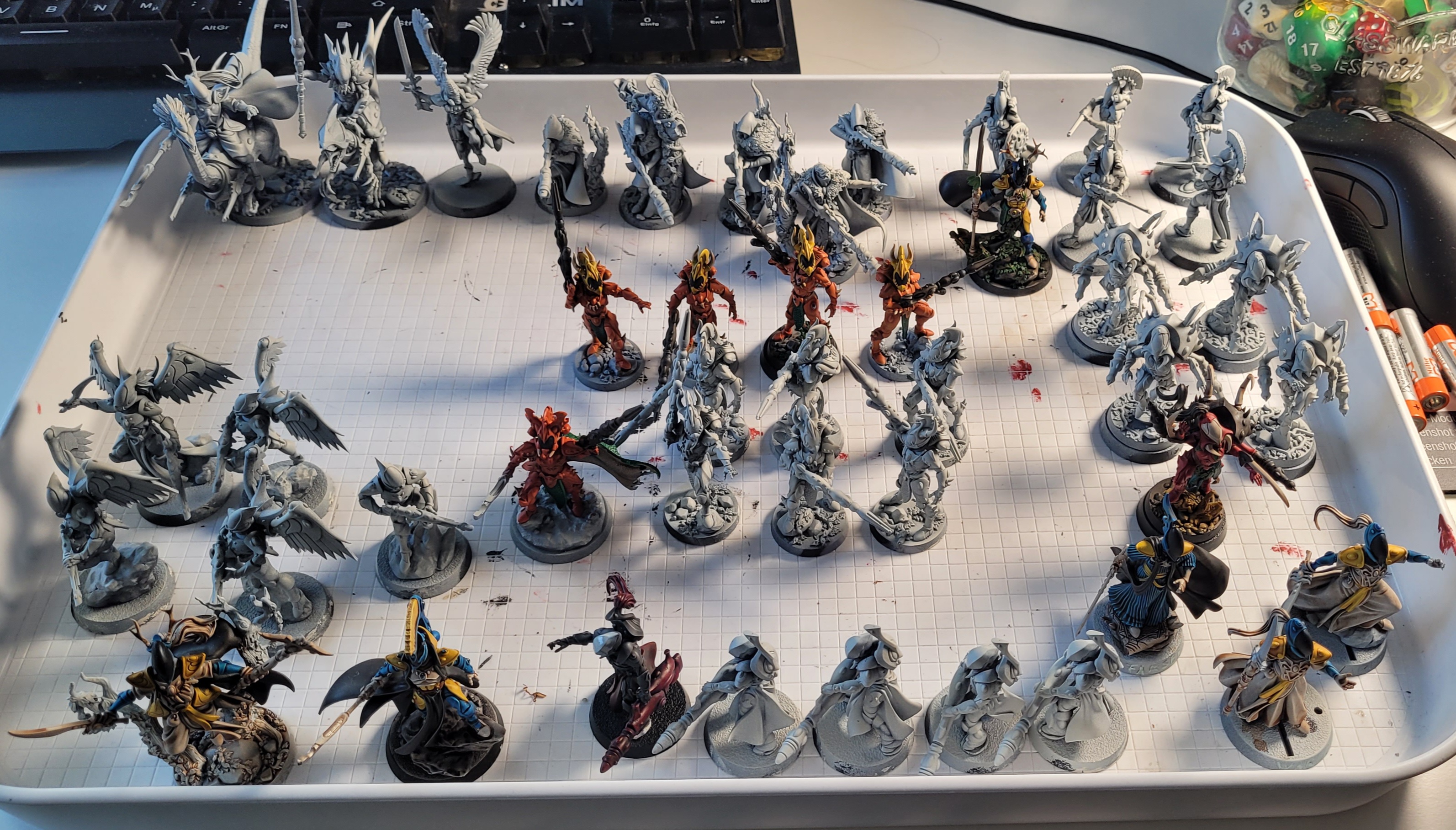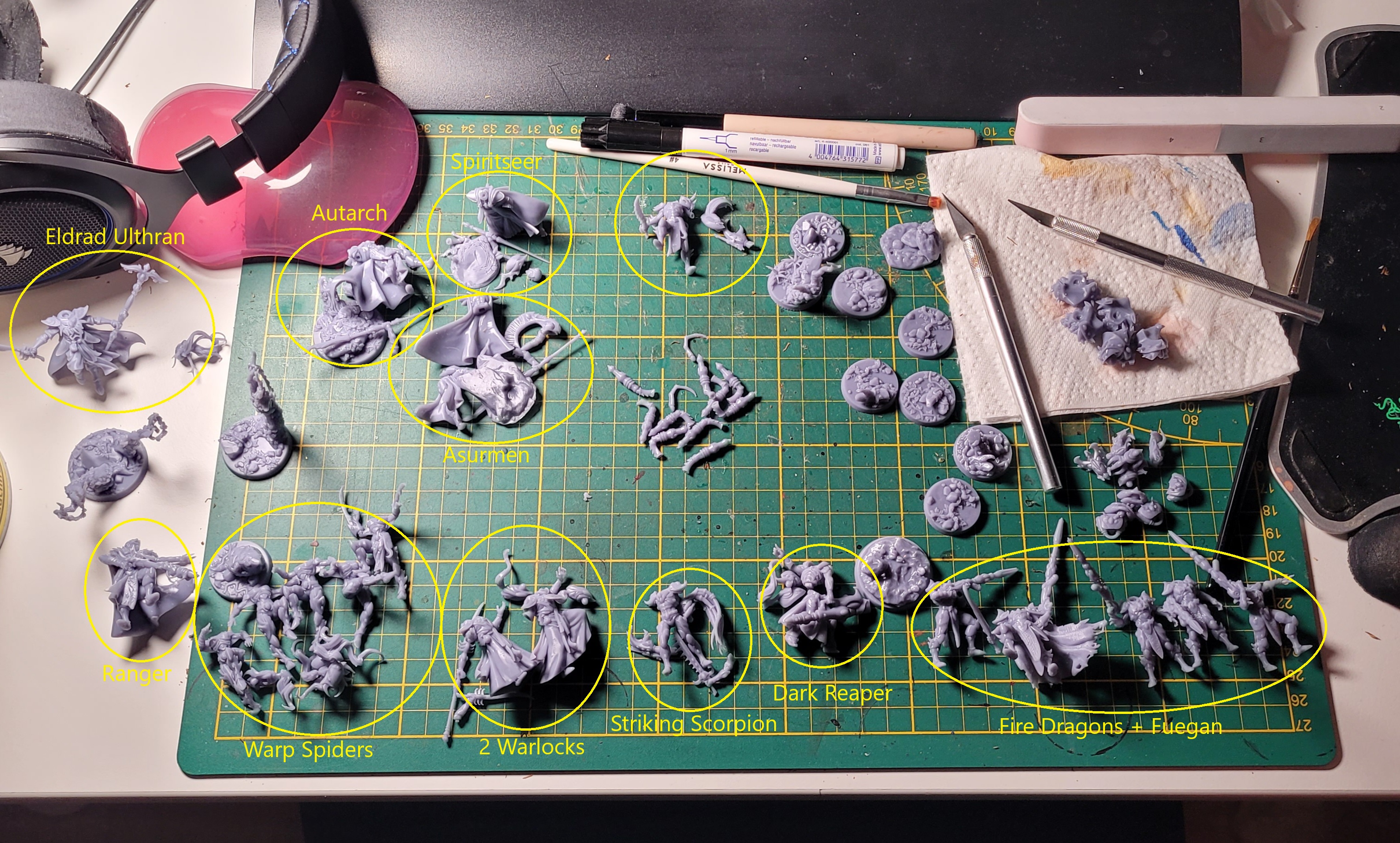 Der Vompi, bester Druckmeister, hat mir die ersten paar Aeldari ausgedruckt, und sie sind einfach wunderschön geworden!