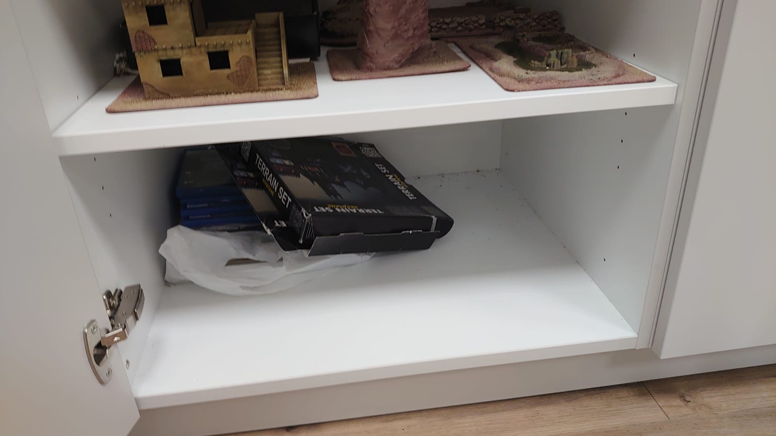 Heute habe ich wieder ein wenig aufgeräumt und nach dem Einräumen des letzten Tisches (auf dem Foto hat noch einer gefehlt) sind noch zwei Flächen im Kasten frei. Die Obere und eine in der Mitte bei der Kiste oder darunter, je nachdem wie sie jetzt noch eingeräumt haben^^