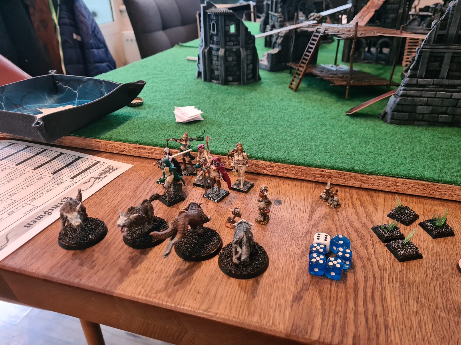 Mein angstverursachender Champion hatte eine tiefe Brustwunde erlitten (-1 Widerstand), viele andere Fähigkeiten erlernt. Meine inzwischen BF-5 Schützen bekamen ein weiteres Mitglied.