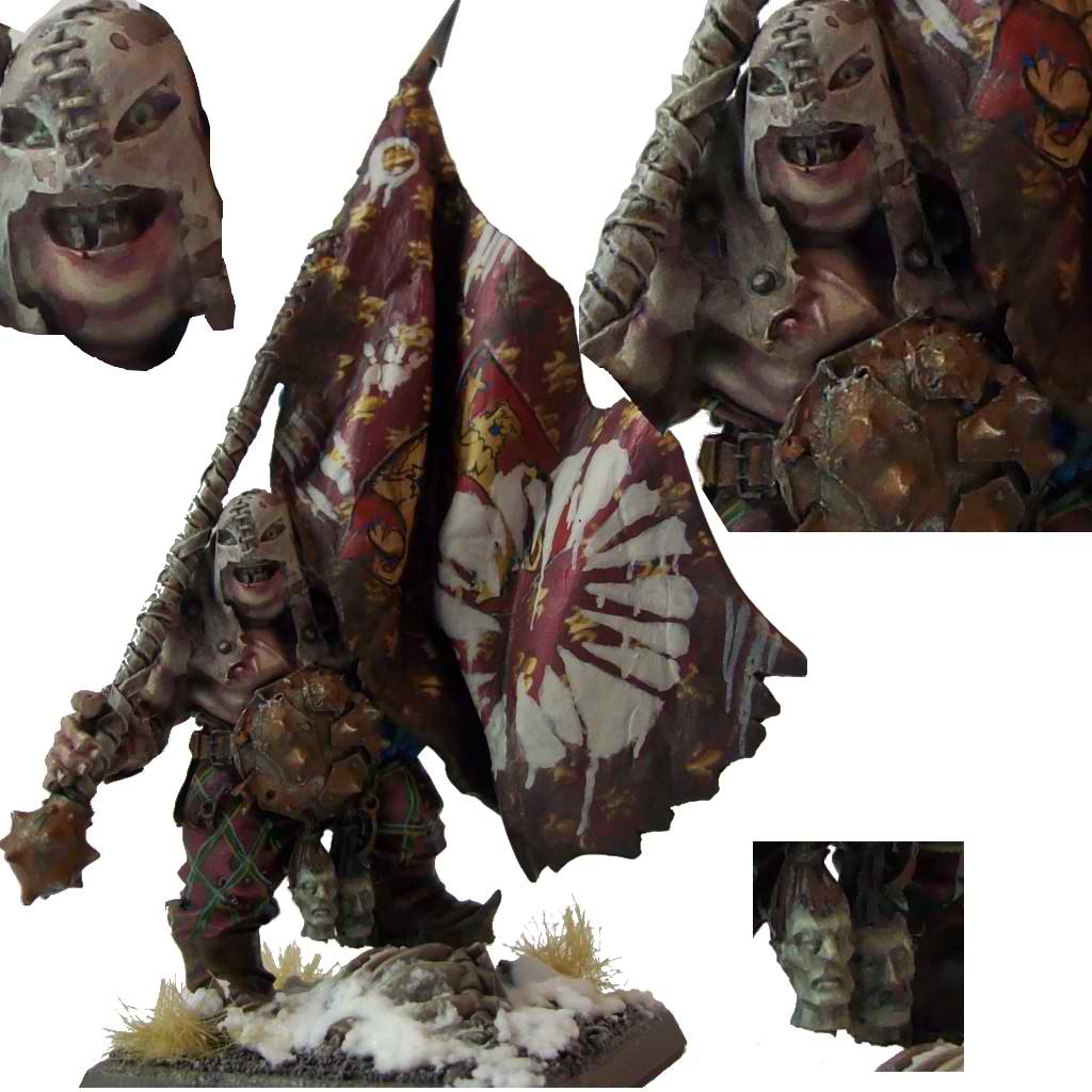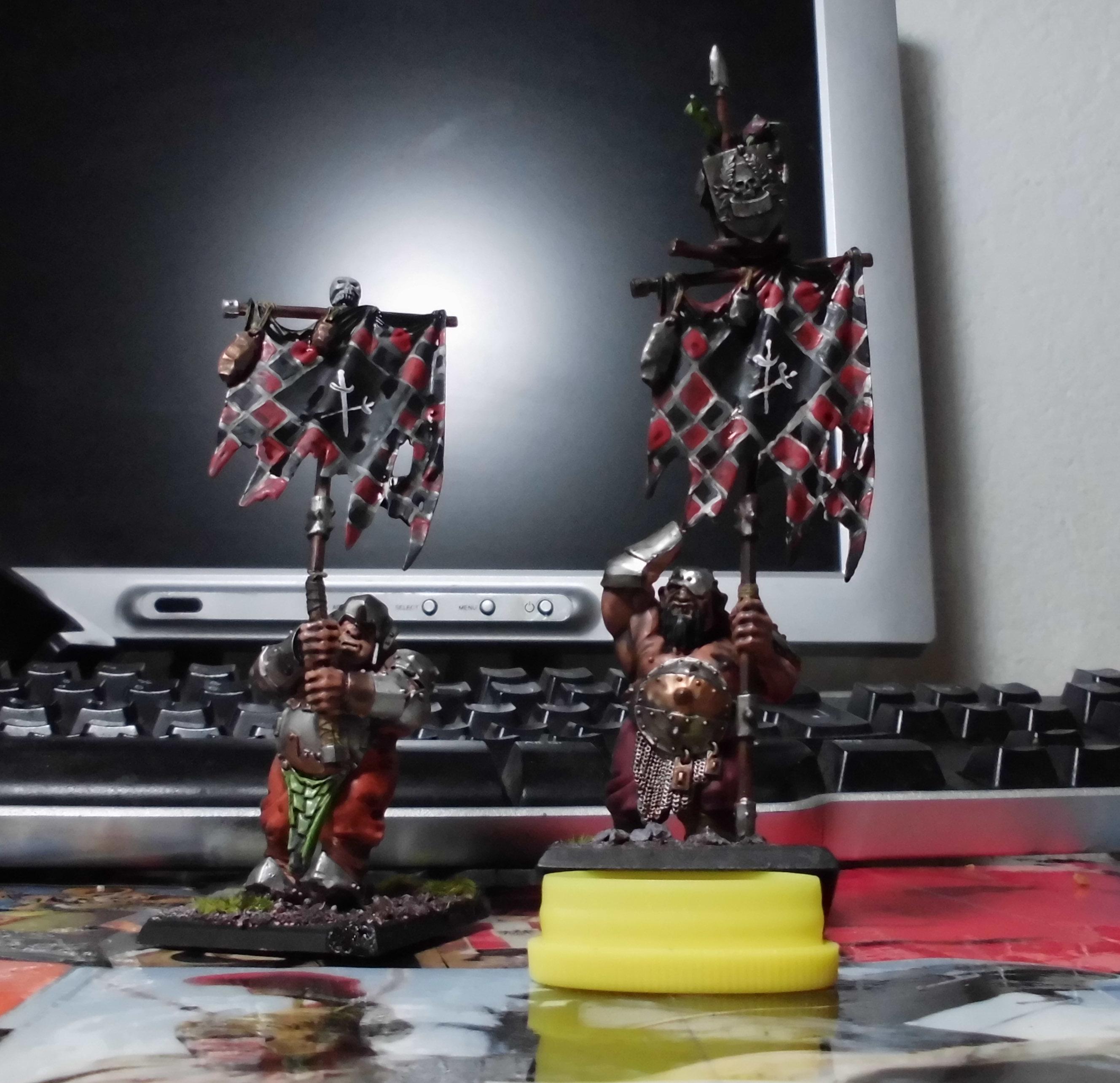 Mein Vorschlag für die Banner - für Ogerverhältnisse sind sie wirklich fast schon zu sauber. Drum würd ich daraus praktisch gestohlene Imperiumsflaggen machen, drüber aber nochmal die Ogerheraldik "drauffetzen" ... sind schließlich keine großen Künstler die Fettsäcke großes Grinsen