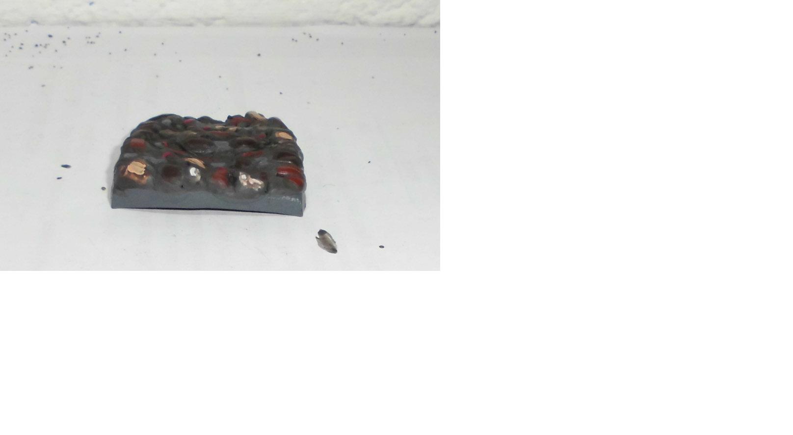 Weil du für diese Art von basegestaltung unbedingt vorher schwarz grundieren musst. Außerdem gefällt mir das Streu das du dafür verwendest nicht sehr gut.