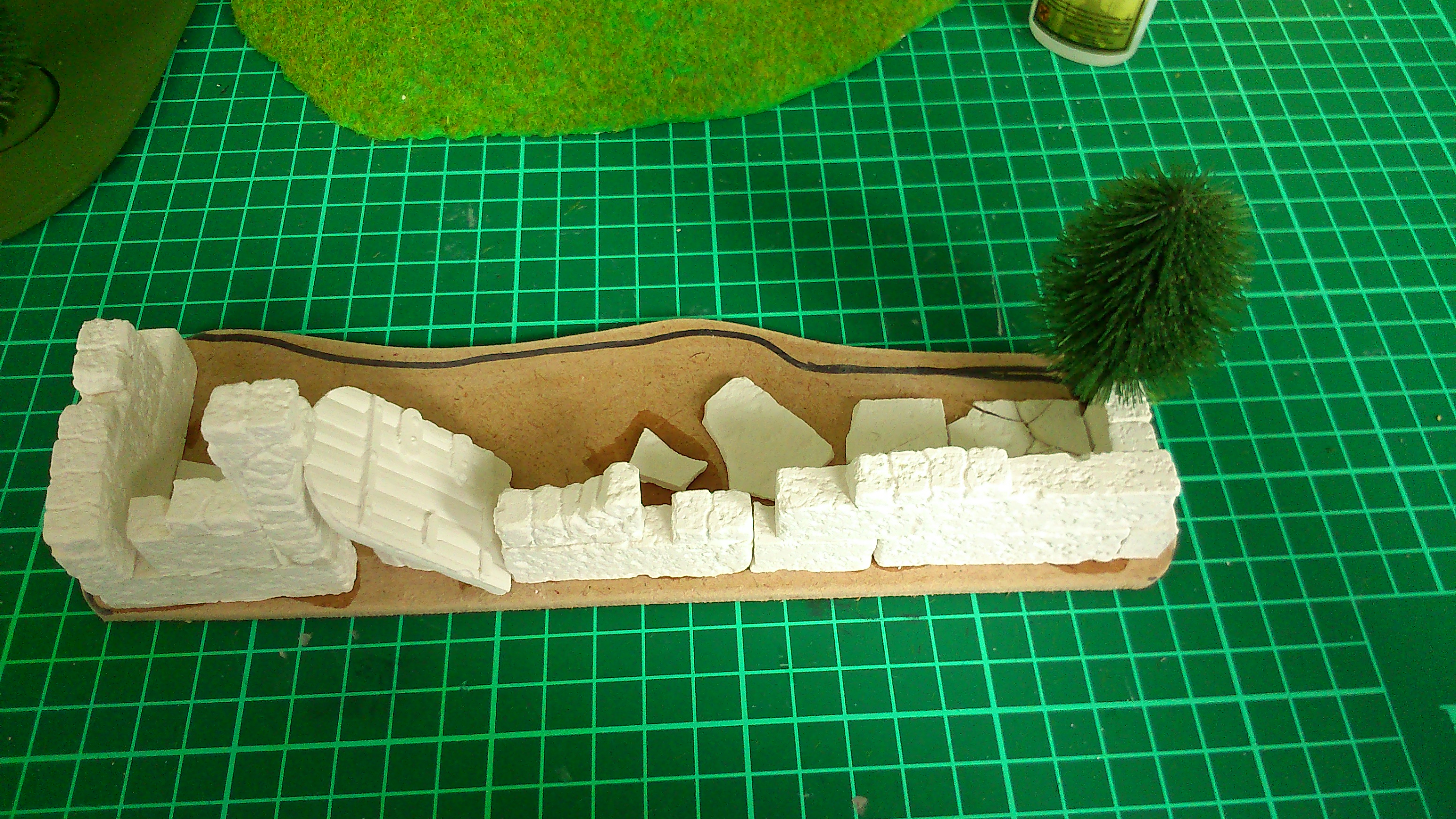 -Bissl mehr Bewuchs an der Wand hinauf, von Miniatur gibt's da so Efeu Ranken das könnte ganz gut aussehen. |