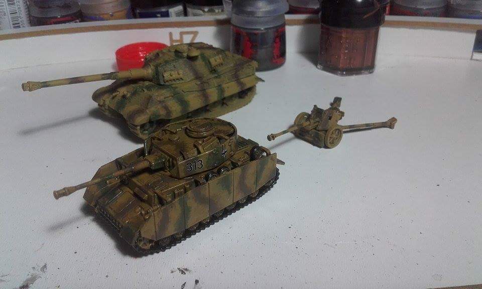 Königstiger, 2x 8.8 Flak 36, 3x 15cm NW 41 und der erste Panzer IV H sind fertig gebastelt