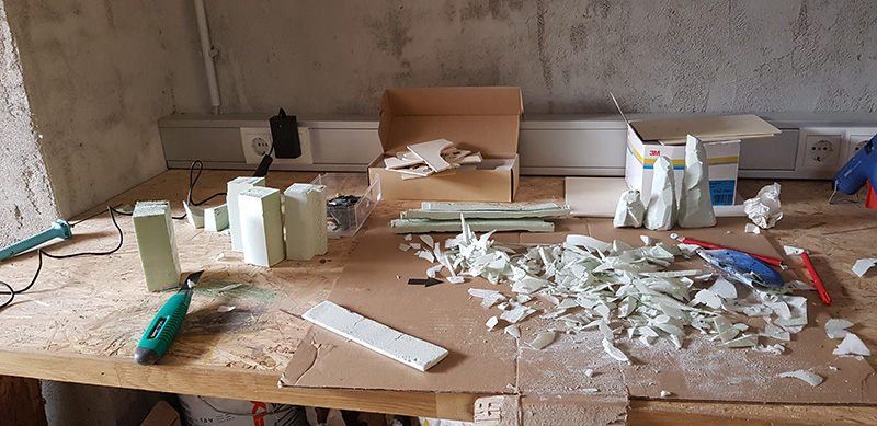 Habe die kleinen Gips Berge aufgeklebt. Für die Zukunft muss hier aufgepasst werden dass die Dinger nicht so schwer werden.
