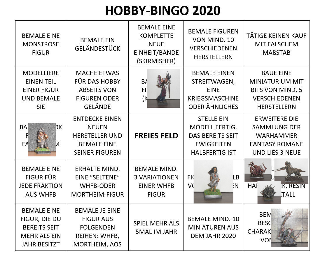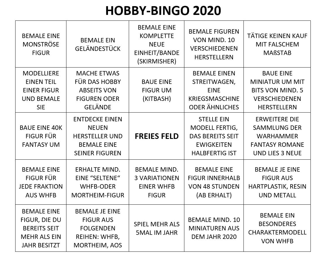 Zu Beginn des Jahres gibt es nun auf der TTW schon seit einiger Zeit einen Thread, in dem ein Bingo-Blatt geteilt wird. Da schaut man dann am Ende des Jahres darauf, was geschafft wurde. In der Vergangenheit haben die Leute immer mehr oder weniger das identische Blatt genutzt, von einem Ideengeber aus dem englischsprachigen Raum. Mittlerweile schreiben viele, so auch ich, ihr eigenes Bingo-Blatt.