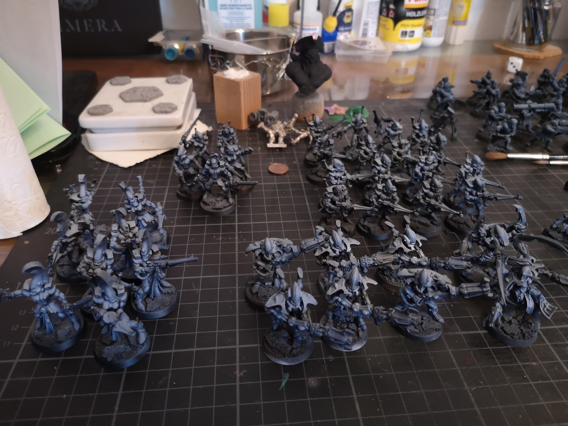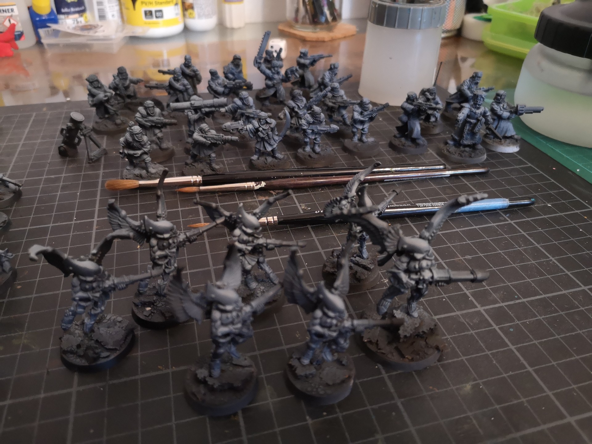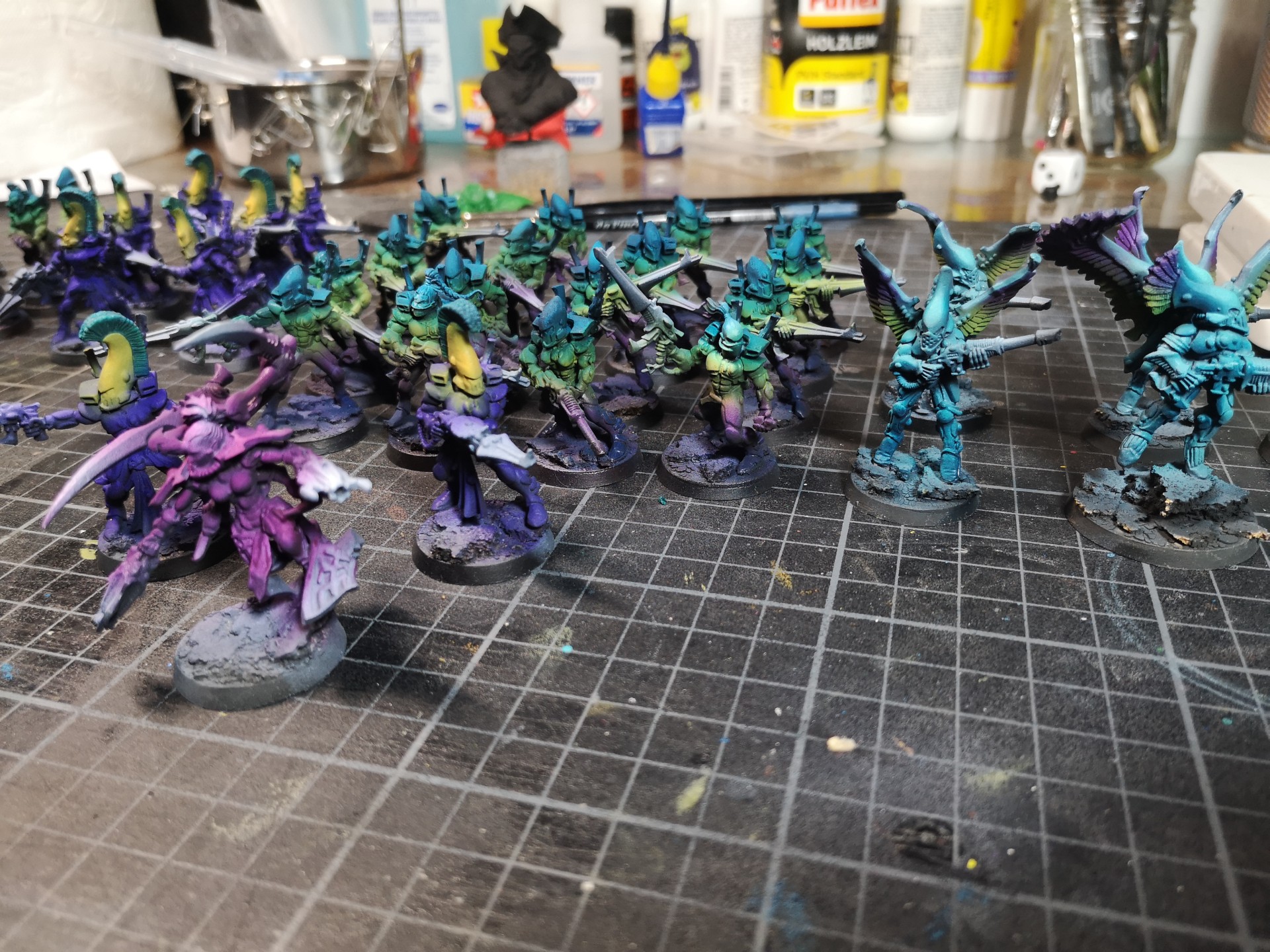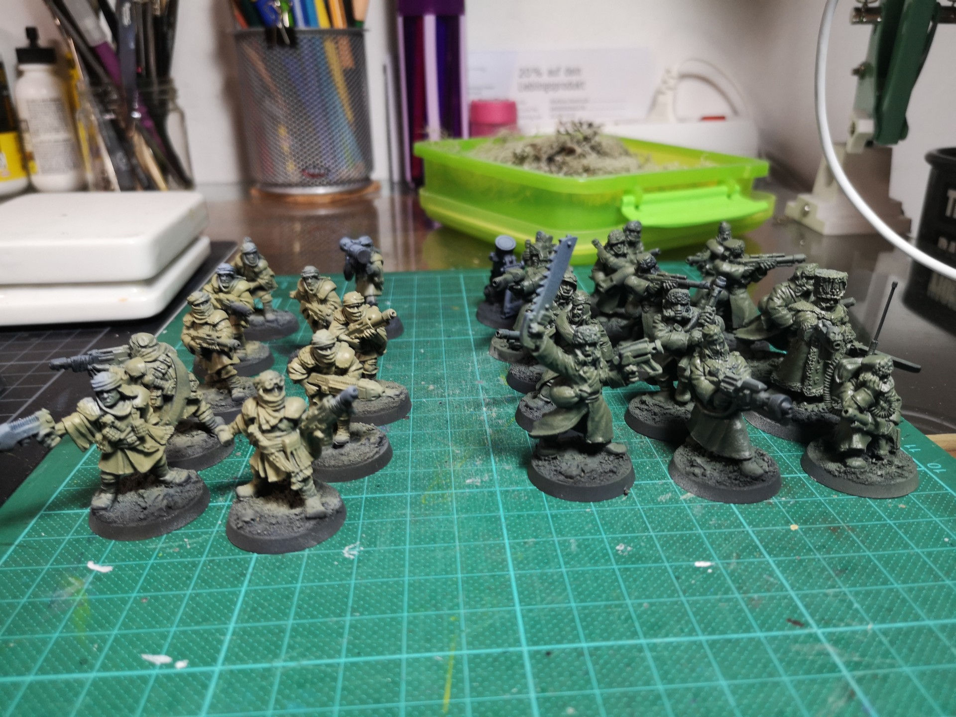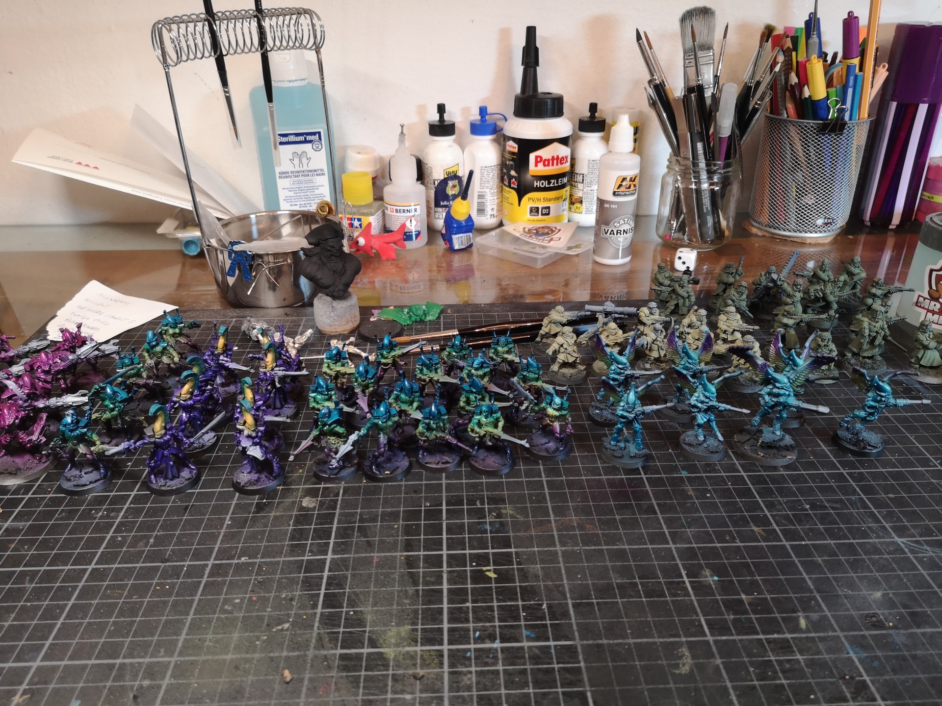 Bis dahin sind es 5 oder 6 Stunden mit Klarlackierung am Ende. Für ca. 70 Minis find ich das mehr als in Ordnung. Ab jetzt geht's halt mit dem Pinsel weiter.