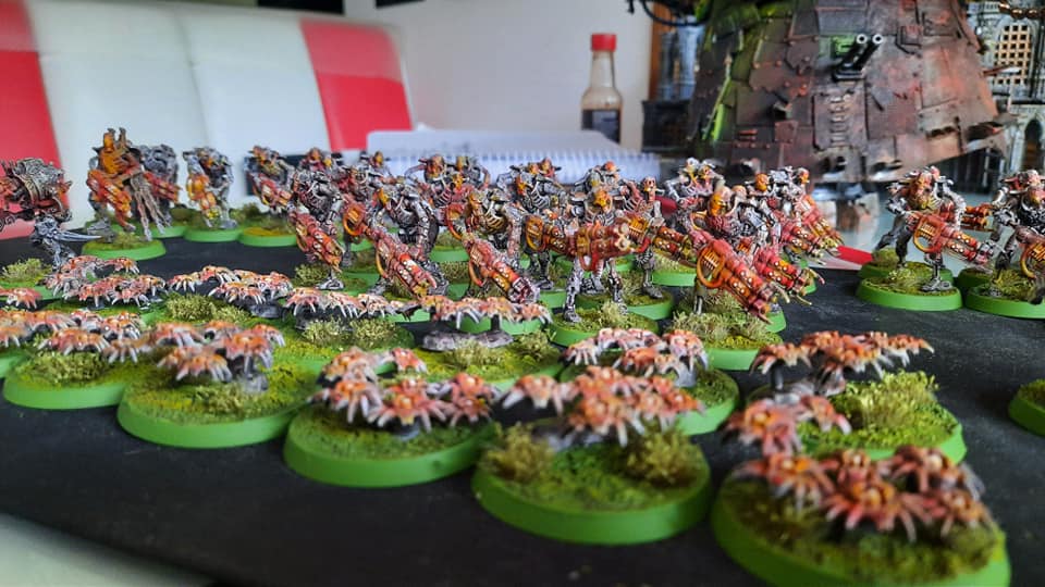 Bin ja kein 40K Guy, aber die Necrons in diesem Farbschema und mit den grünen Bases sind auf jeden Fall eine ungewohnte Kombination. Mir gefällt es.