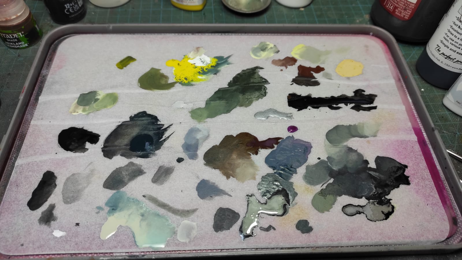 Zu dem Zeitpunkt sah meine Palette dann so aus - und das waren dann auch die Farben die auf den Vampir kamen - mit ein bisschen extra Blut natürlich
