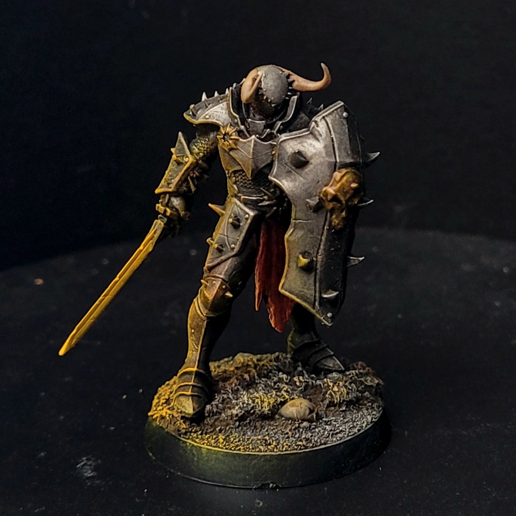 Jetzt isch wieder a bissl was weiter gangen bei meine Chaos Warriors! Die meisten hab’n jetzt endlich ihre Bases kriagt, und des gibt ihnen gleich an richtig schaurigen Look. Besonders taugt mir der OSL-Effekt, den i bei den Waffen gmacht hab. Die leuchtenden Effekte lass’n die dunkle Magie und Aura von die Krieger richtig zur Geltung kommen und machen sie noch bedrohlicher.