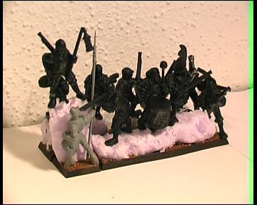 Hübsch aber bei dem Aufgespießten Ungor würd ich noch die Lanze durch ihn durch gehen lassen, so dass ein Teil noch aus seinem Rücken rauskommt.