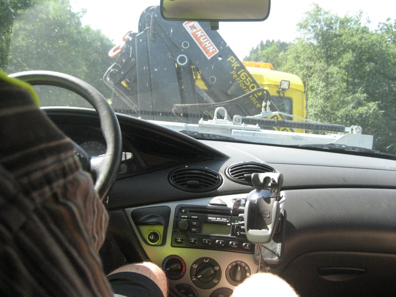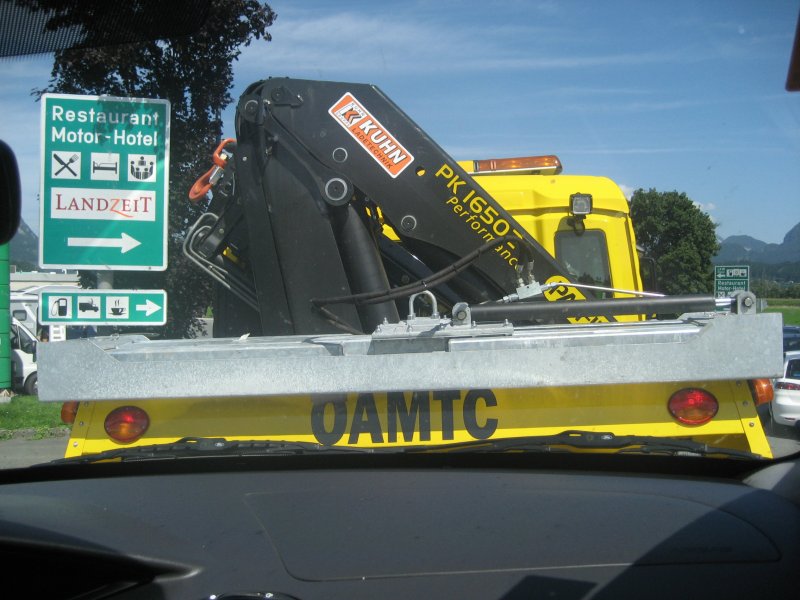 1) Panne , nachdem wir die Ratz abgeholt haben..- auf einem ÖAMTC- LKW wurden wir dann zum autopark kutschiert, wo wir einen Leihwagen erhielten..