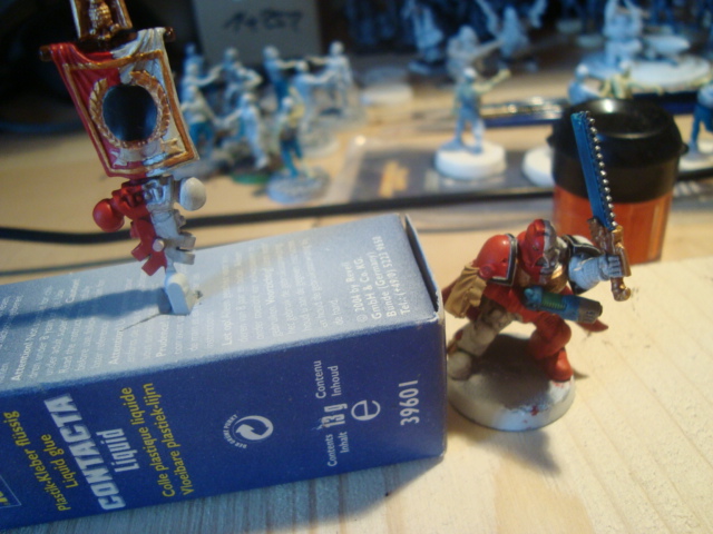 Von der Farbgestaltung her werde ich wohl beim Rot/weißen Schema bleiben, da es mir sehr gefällt und ich denke, eine Armee der Space Marines dürfte damit auch sehr gut aussehen. Natürlich werden erst einmal die Testminiaturen dafür dann den Ausschlag geben, wie gut es dann schließlich gefällt und ob es bleibt.
