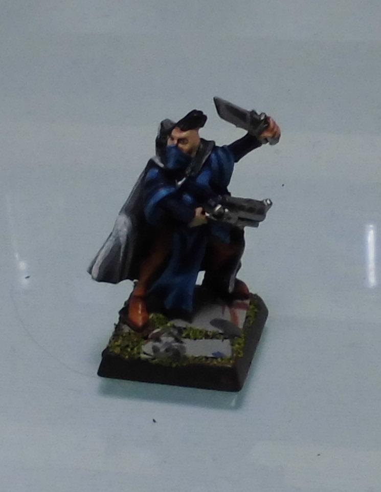 Hier eine erste Testmini, bisher nur an dem Mantel gemalt. Umgebaut hab ich die auch ein wenig, hat ne Pistole und ein Messer um es schön für Necromunda spielen zu können.