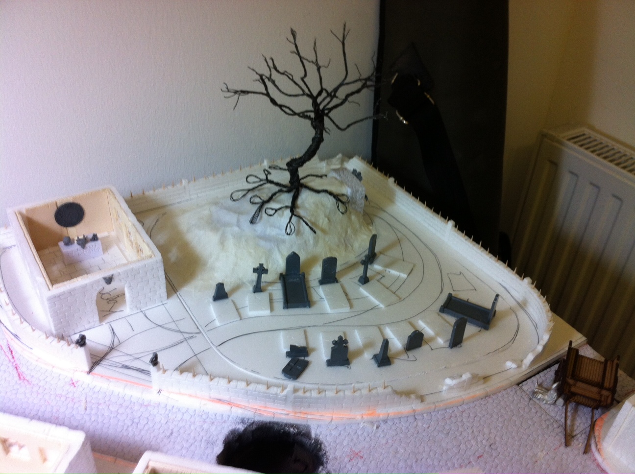 Hab gestern mal mit dem Baum fürn Friedhof begonnen - Im Prinzip fehlt nur noch der bevor die Platte besandet und bemalt werden kann - Hab mich bis jetzt aber immer gedrückt den zu machen...