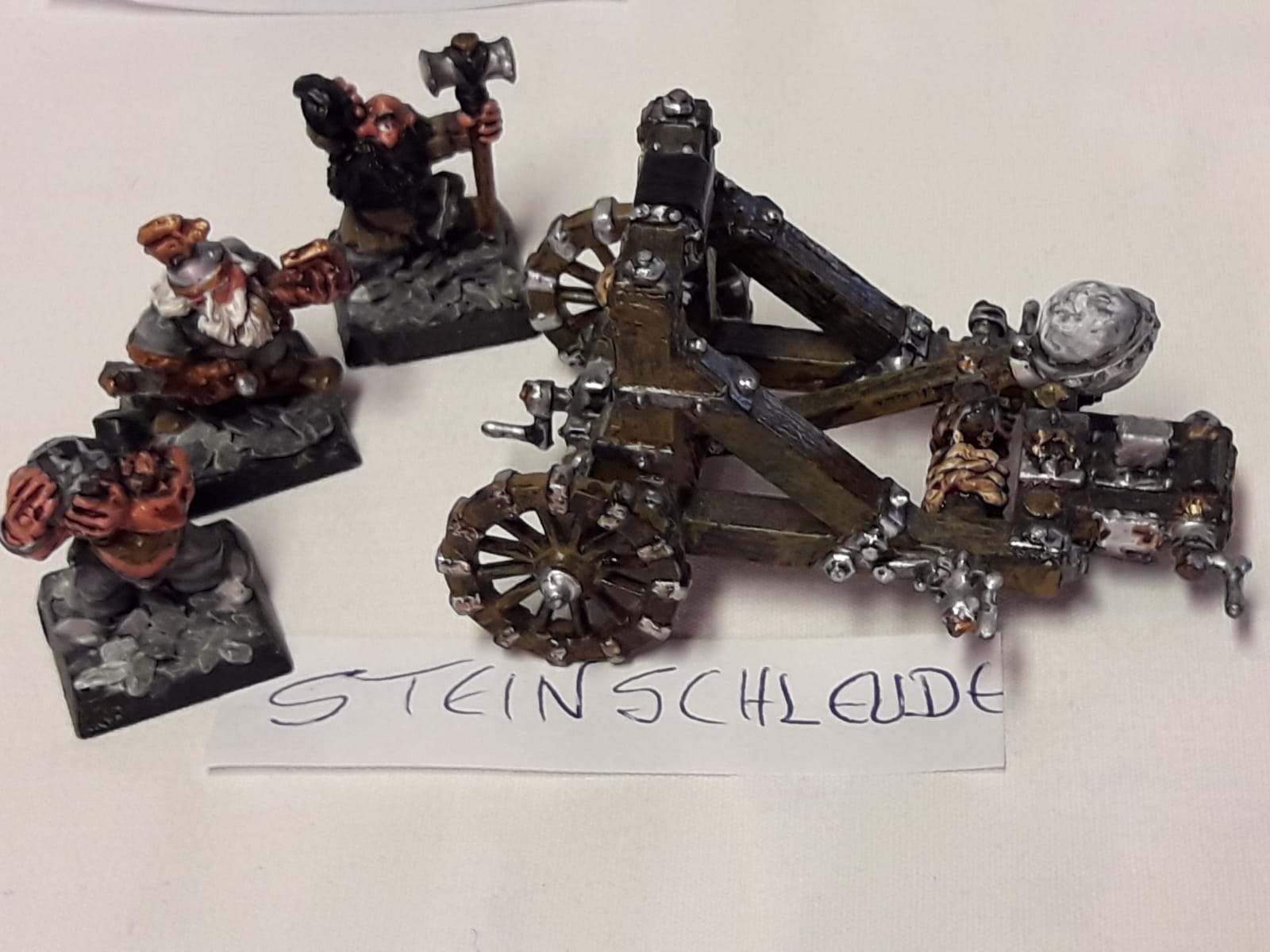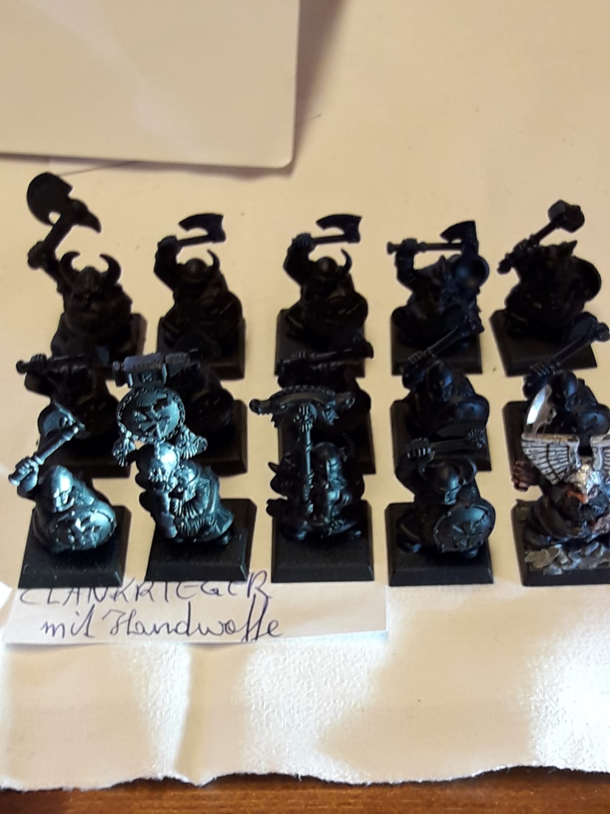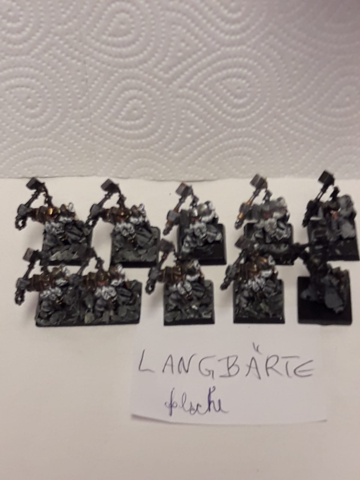 Tja, ich musste 2 Bandscheiben ersetzen lassen und kann jetzt nicht mehr so lange rumsitzen und malen - die Zwerge sind zwar schon zu einem grossen Teil bemalt, trotzdem müsste ich da noch viele Stunden dran sitzen. Daher müssen die jetzt weg (und andere Armeen und Bloodbowl teams auch).