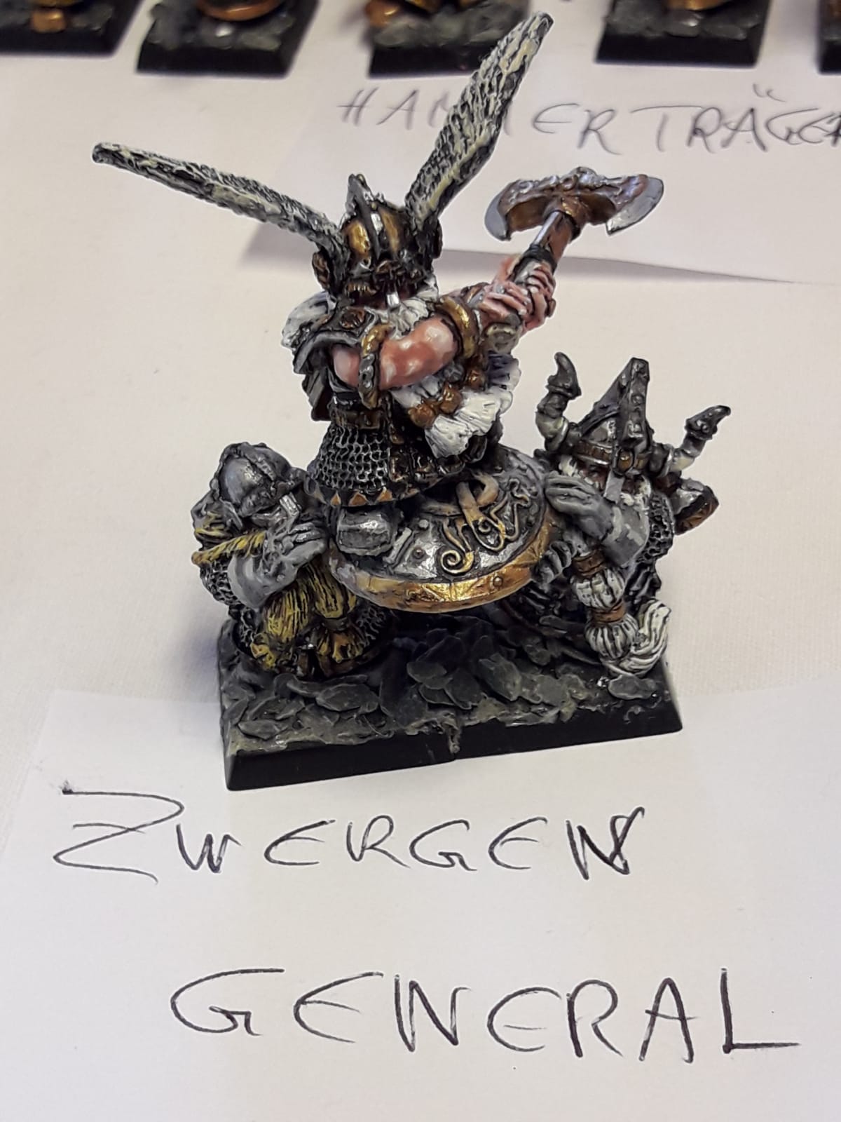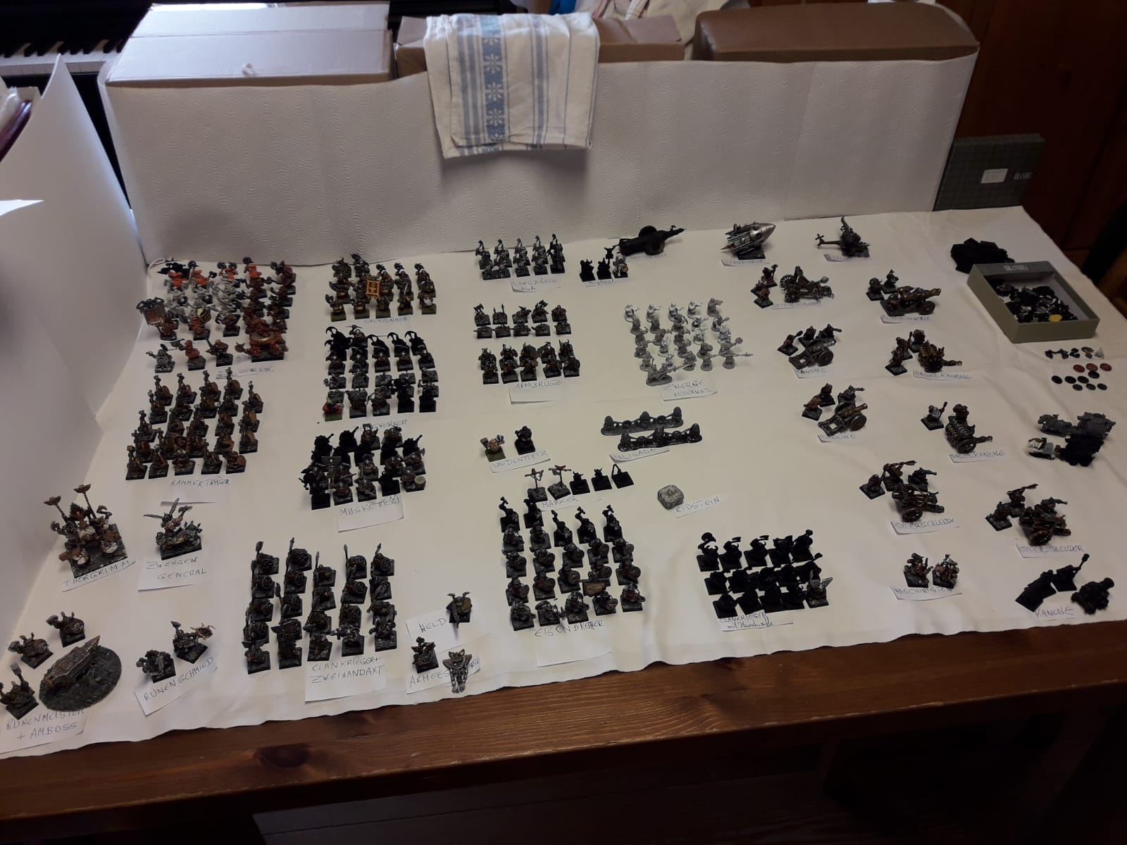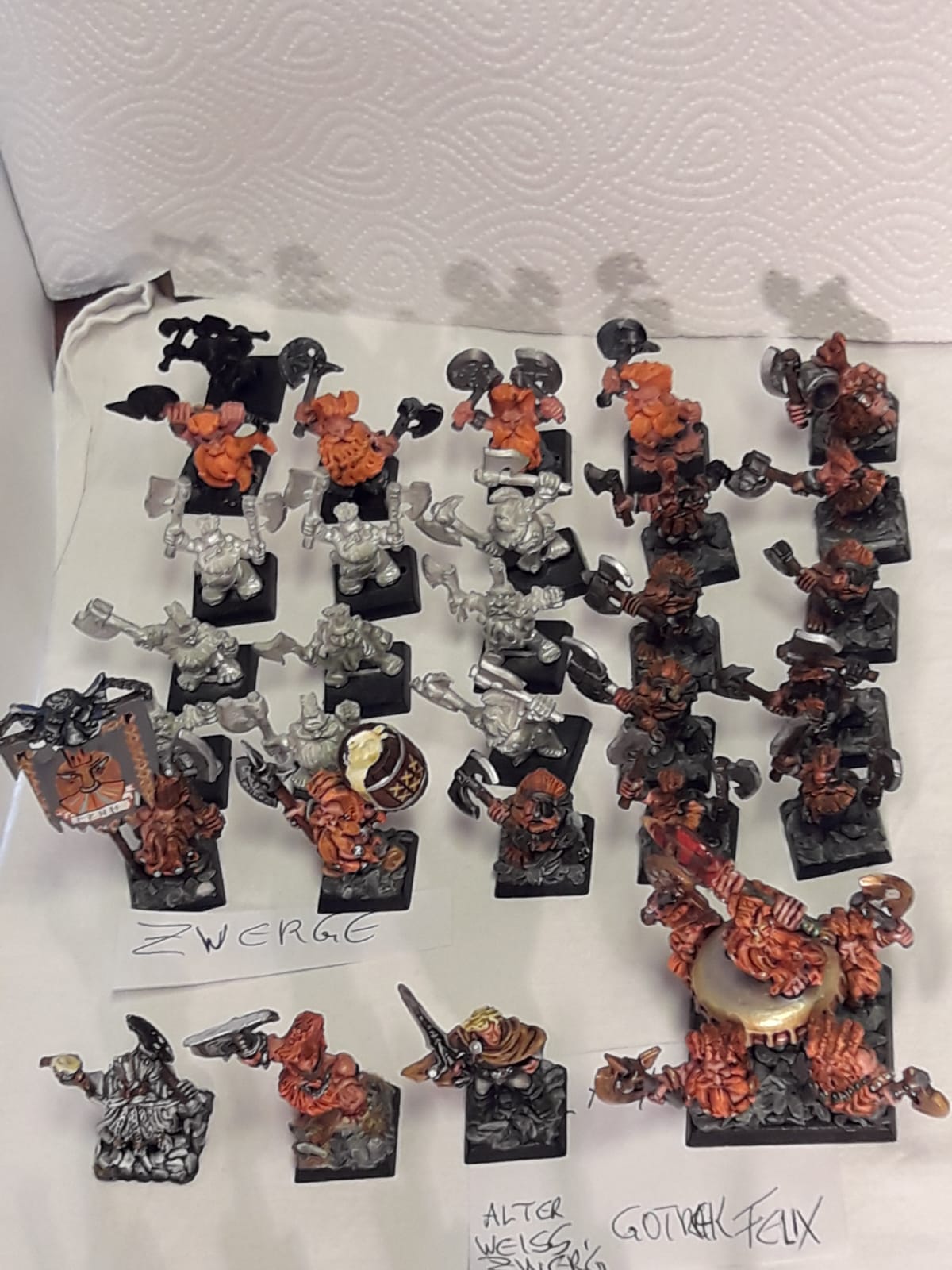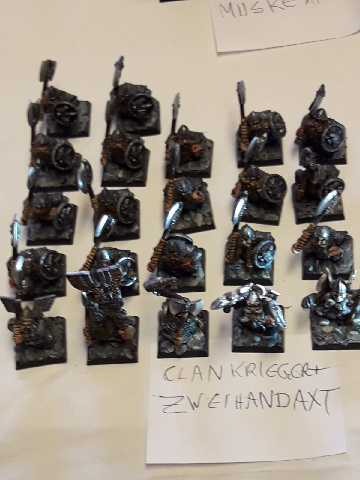 Ich hatte eine Operation an der Wirbelsäule (2 Bandscheiben wurden ersetzt) und ich kann nicht mehr so lange sitzen und malen und verkaufe daher mehrere Armeen. Meine Zwerge sind in Österreich (und ich könnte die nie zu Ende bringen), und sie suchen einen neuen General, bzw. neue Generäle, die ihnen Farbe und Einsatz am Schlachtfeld garantieren.