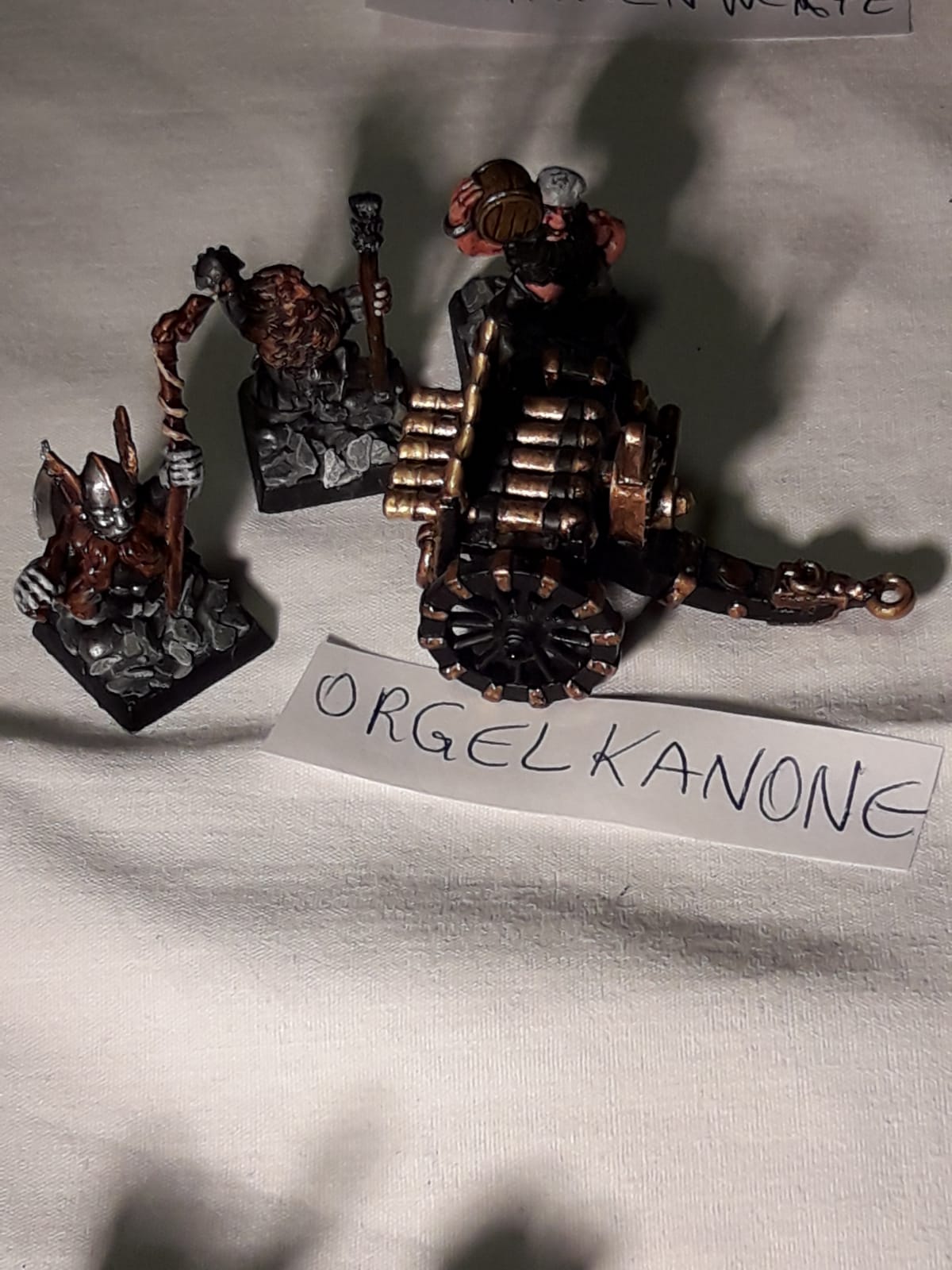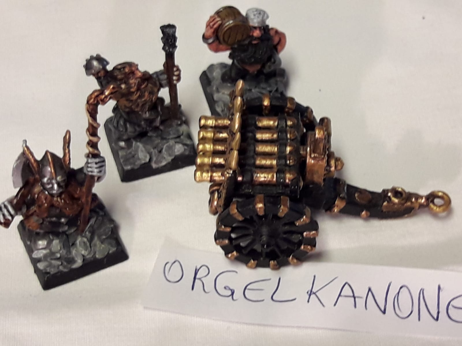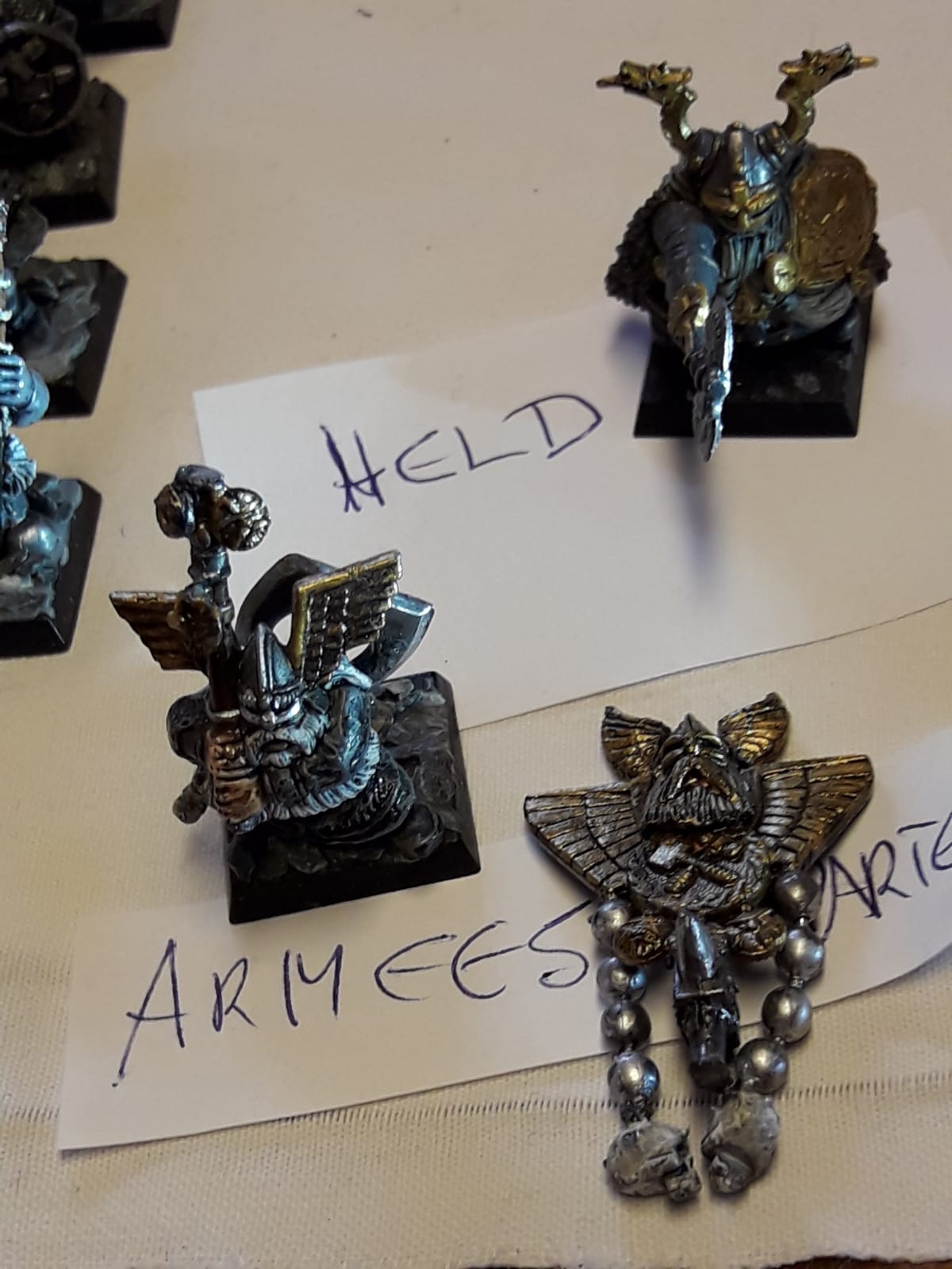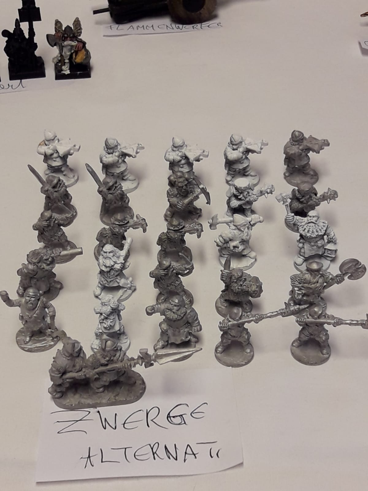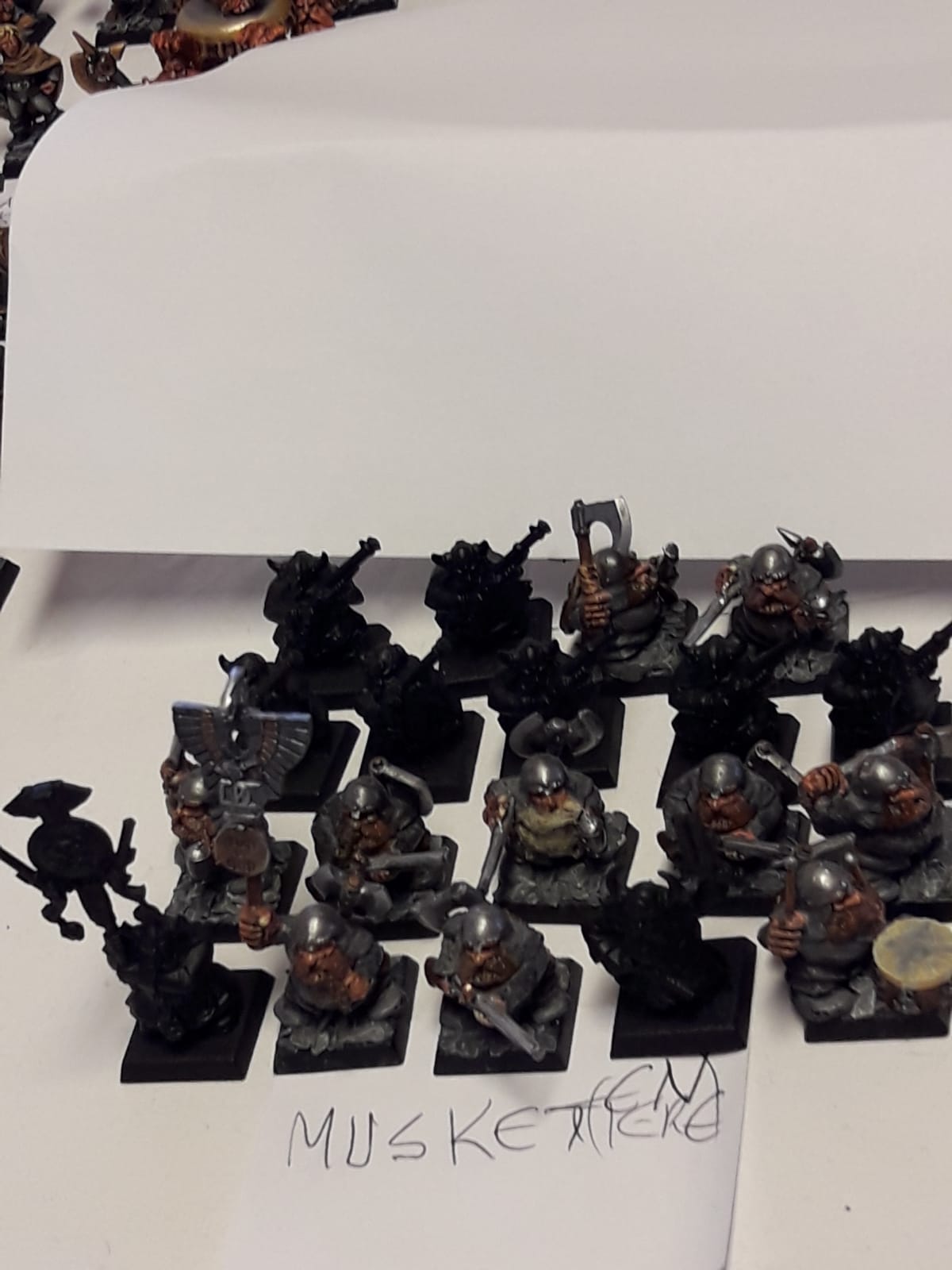 Ich hatte eine Operation an der Wirbelsäule (2 Bandscheiben wurden ersetzt) und ich kann nicht mehr so lange sitzen und malen und verkaufe daher mehrere Armeen. Meine Zwerge sind in Österreich (und ich könnte die nie zu Ende bringen), und sie suchen einen neuen General, bzw. neue Generäle, die ihnen Farbe und Einsatz am Schlachtfeld garantieren.